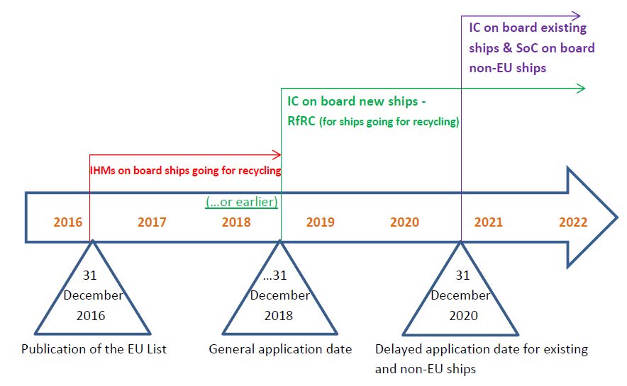 In the following links you can find the most important Regulations related to the inventory of Hazardous Materials (IHM), together with the accompanying Guidelines for the implementation of them, as well as a timeline with all the critical dates.